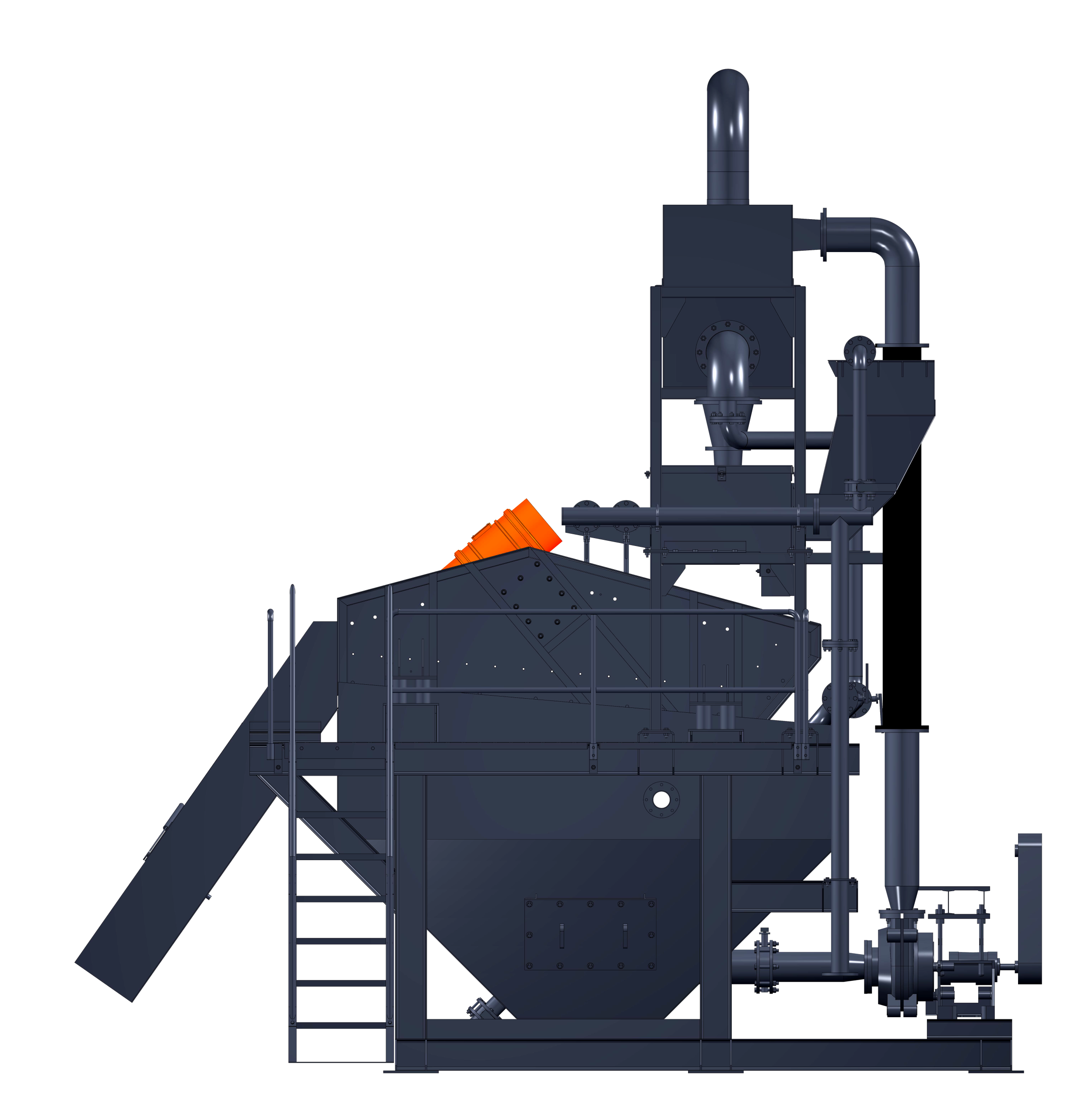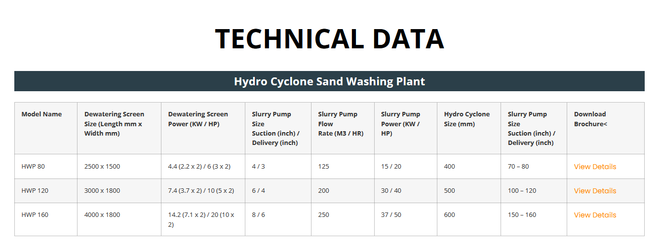 The hydro cyclone is the heart of the sand washing plant, using centrifugal force to separate the fine particles (silt) from feed material as impurities. The sand is fed into the hydro cyclone through a feed pipe, where it is spun around at high speeds. As the sand particles are forced to the outer edge of the cyclone, they are separated from the water and other impurities, which are then expelled through an overflow pipe.