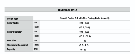 Roll Crusher size can be customised from standerd roller width and diameter as per requirement to meet feed size, production capcity and feed-to discharge ration.