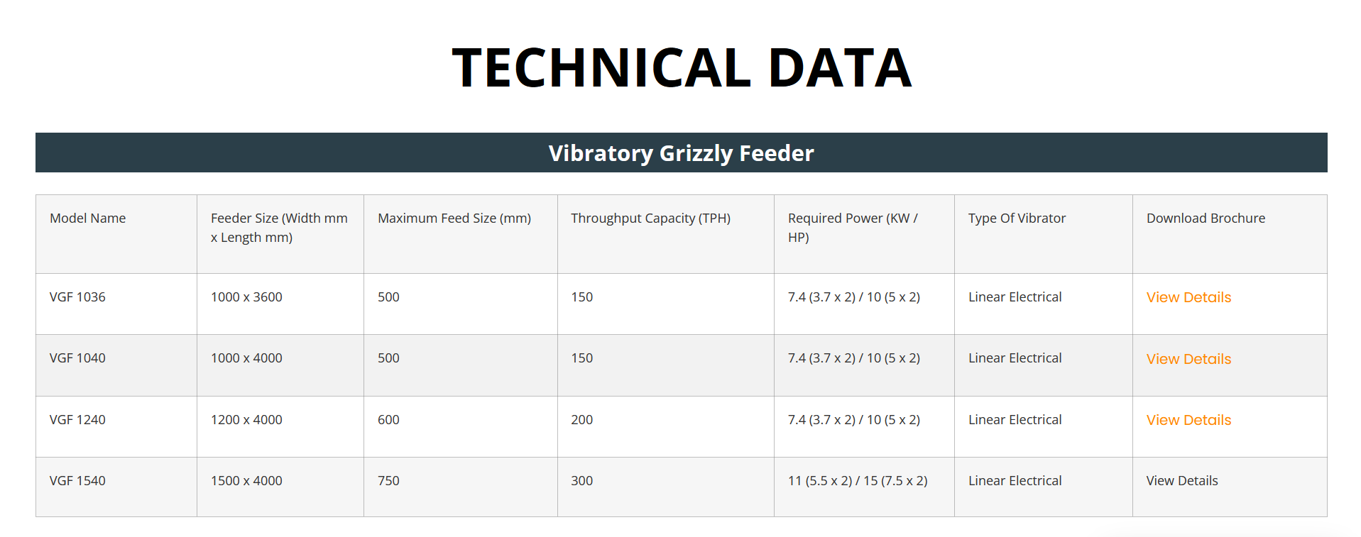 Low Maintenance: Vibratory grizzly feeder are equipped with vibrating assembly of twin vibratory motor, minimizing the dependable and maintenance part or assembly, which makes it more reliable and low maintenance to operate. They are made from heavy-duty materials that can withstand harsh conditions, and their simple design makes them easy to operate and maintain.
